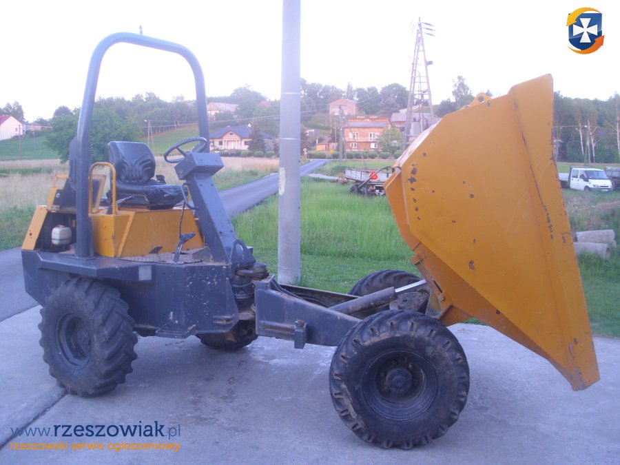 Sprzedam wozidło budowlane 3tony Terex 3001KFA Rok prod 2007 Waga 2260kg Ładowność 3000kg Silnik 4-cylindry Kubota Moc 32,4 kW Przebieg 2000 h vat do faktury