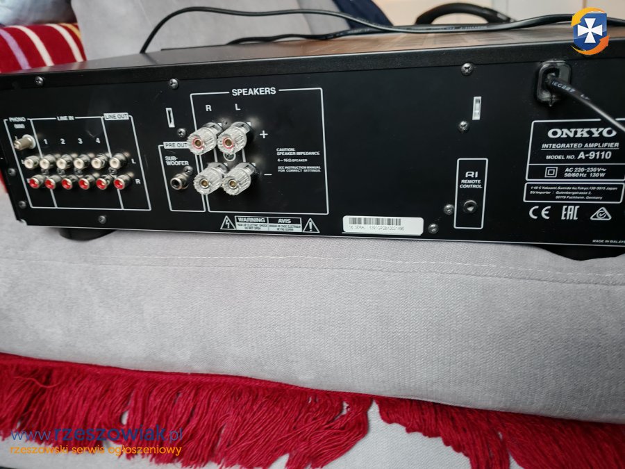 Sprzedam wzmacniacz Onkyo A-9110 z pilotem w dobrym stanie.Moc znamionowa RMS 2x30 W pobor mocy 130W waga 7kg.Posiada wyjscie na subwoofer.Odbiór osobisty w Rzeszowie.