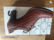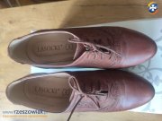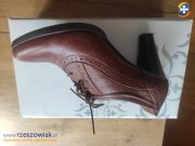 Sprzedam (założone 1 raz) damskie brązowe wiązane skórzane półbuty na obcasie (wysokość ok. 7,5 cm). Lasocki - rozmiar 38.