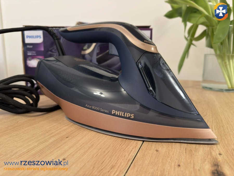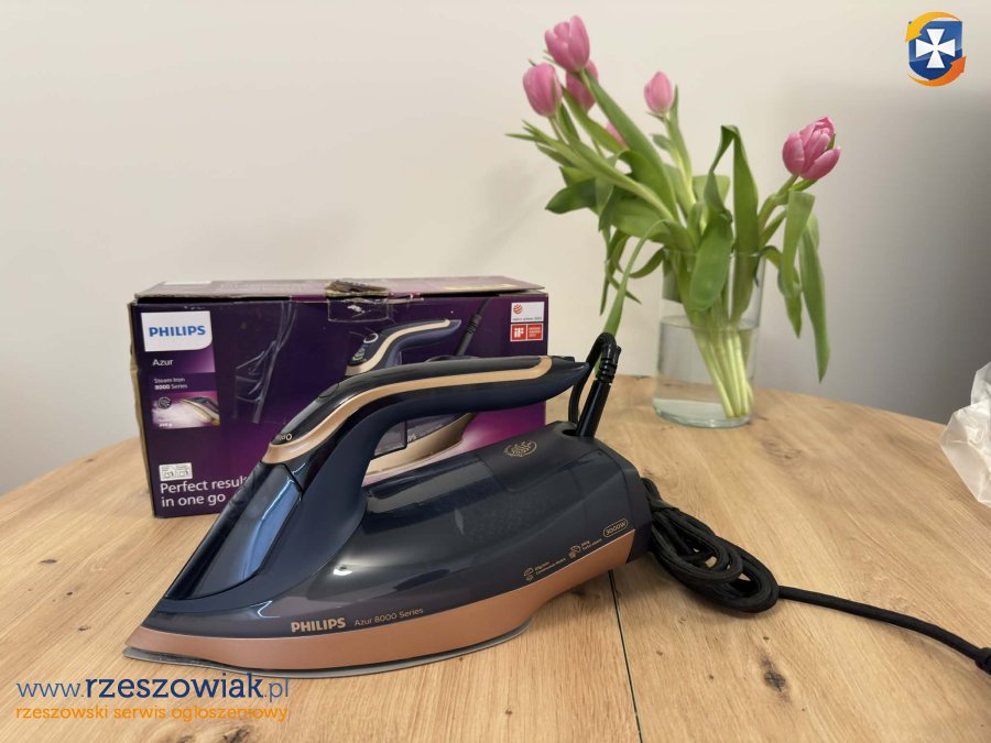 Sprzedam żelazko parowe Philips Azur z serii 8000 â sprzęt wysokiej klasy, który bez problemu radzi sobie nawet z mocno pogniecionymi tkaninami.