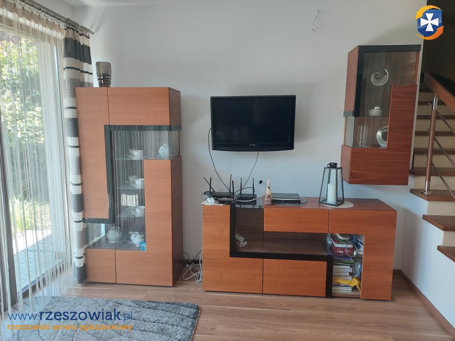 Sprzedam zestaw drewnianych mebli ekskluzywnej marki Paged w pięknym orzechowym kolorze. Meble nadają się idealnie jako wyposażenie salonu. W skład zestawu wchodzi rozkładany stół o wymiarach 100/150 wraz z 6 krzesłami, wysoka komoda, niska komoda oraz szafka wisząca. Meble nie mają praktycznie żadnych śladów używania, są w bardzo dobrym stanie. Sprzedaż tylko kompletnego zestawu. Cena 4 999,00 zł za całość.
