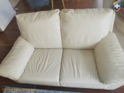 Sprzedam zestaw wypoczynkowy trzy części skórzany , zadbany skóra jak nowa jasno beżowa .