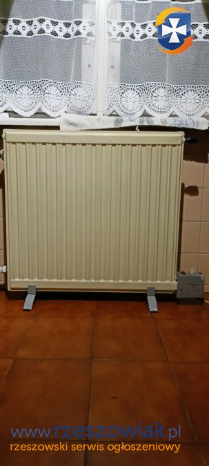 grzejnik olejowy z termoregulatorem. 120 V. Moc nominalna 1.0 kW. Wys. 71 cm, szer. 72 cm, grub. 18 mm.