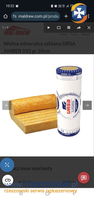 [Sprzedam/wymienię] Wełna mineralna szklana URSA AMBER 033 20 cm. 3 rolki -400 zł lub wymiana na inne materiały budowlane.