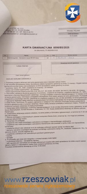 Do zakupu dołączony paragon z datą zakupu stanowiący gwarancję urządzenia.