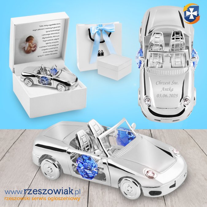 Srebrne auto na Chrzest Św. z grawerem â wyjątkowy prezent dla chłopca