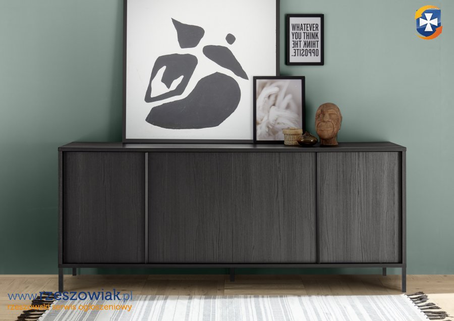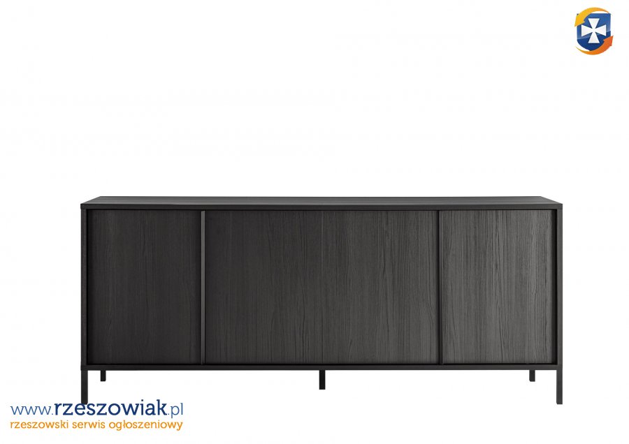 Komoda 4 drzwi , korpus i front czarny ze strukturą.