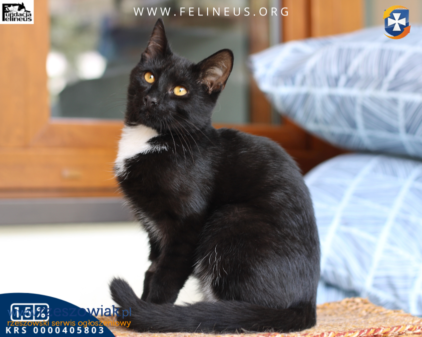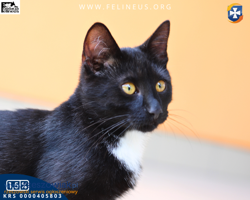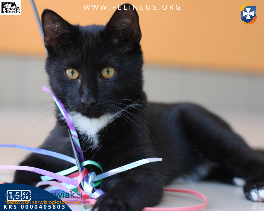 Stefan to kocurek urodzony w marcu 2025r. Kocurek charakteryzuje się czarnym umaszczeniem z subtelnymi białymi wstawkami oraz pięknymi miodowymi oczami. Kociak jest ogromnie towarzyski w stosunku do innych kotów. Uwielbia zabawy zarówno z kocimi towarzyszami, jak i z człowiekiem- np. wędką. Stefan jest też ogromnym przytulasem. Uwielbia, gdy człowiek go przytula. Odwdzięcza się przy tym mruczeniem i ugniataniem łapkami.
