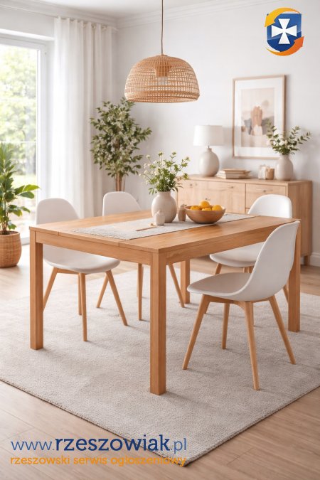 Styl: Prosta, ponadczasowa forma oraz połączenie naturalnego drewna sprawiają, że stół doskonale pasuje do wnętrz klasycznych, nowoczesnych i skandynawskich.