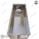 ⢠1 perforowane wyciągane sito - nierdzewne kwasoodporne. Sito umieszczone jest powyżej trapezowego dna na całej długości stołu