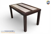 Blat naturalna okleina bukowa + wstawki szkła lacobel.