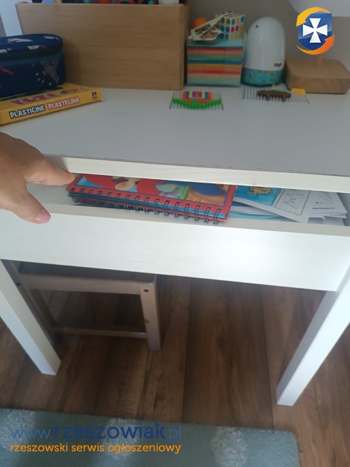 Stolik z krzesełkiem, używany ale w dobrym stanie. Blat że schowkiem, podnoszony do góry jak na zdjęciu, trochę pomalowany kredkami. Poza tym technicznie wszystko sprawne. Odbiór osobisty.
