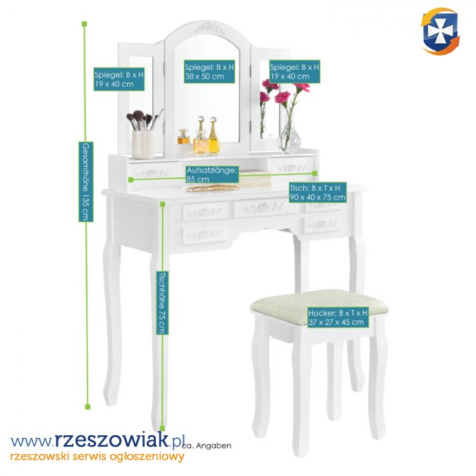 STYLOWA TOALETKA Z LUSTREM I TABORETEM