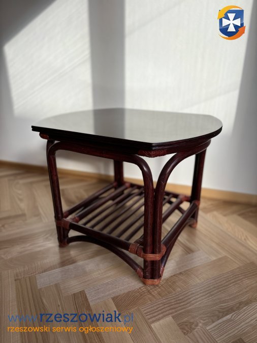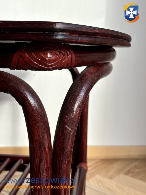 Stylowy stolik kawowy z rattanu, idealny do salonu lub sypialni. Jego elegancka, okrągła forma i ciepły, brązowy kolor doskonale wpisują się w nowoczesne wnętrza. Stolik posiada dodatkową półkę, która zapewnia dodatkowe miejsce do przechowywania. Wykonany z wysokiej jakości materiałów, gwarantuje długotrwałe użytkowanie.