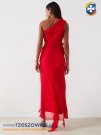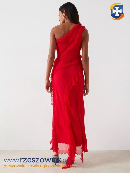 Sukienka jest w bardzo dobrym stanie.Sukienkę miałam na sobie tylko jeden raz. Rozmiar z metki 38 M. Na rozmiarze M 38 sukienka będzie bardziej luźna. Sukienka na rozmiarze 40 będzie bardziej dopasowana. Ciężko jest ją dokładnie zmierzyć ze względu na elastyczny materiał i podszewkę pod spodem. Sukienka mierzona na płasko. Długość całkowita mierzona od ramienia z przodu 135 cm, z tyłu 140 cm. Długość całkowita mierzona od ramienia do najdłuższej falbanki 153 cm. Szerokość od pachy do pachy około 45 cm. Szerokość w talii i biodrach jest zmierzona na podszewce. Szerokość w talii od boku do boku 45 cm. Szerokość w biodrach od boku do boku 55 cm.