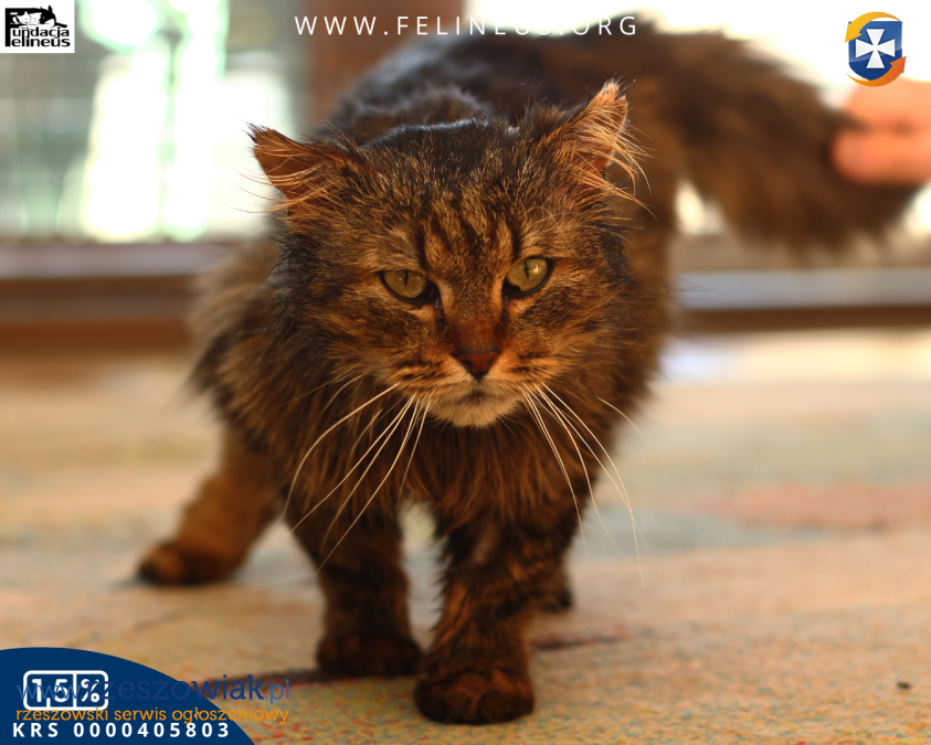 Sułtan kocurek o spokojnym usposobieniu, urodzony około 2023 roku. Jest bardzo grzeczny i nie sprawia żadnych kłopotów - przyjazny i towarzyski w stosunku dzieci i dorosłych, nie awanturuje się, kiedy musi zostać sam, pozwala bez problemu podać sobie tabletkę. To typ kota, który leży na kanapie i śpi na poduszce obok człowieka. Może zamieszkać z innymi spokojnymi kotami i psami, ale nie odnajduje się w dużym stadzie.