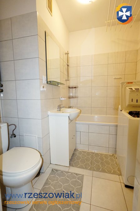 z agd - w łazience wanna i płytki oraz pralka, w pełni umeblowane i