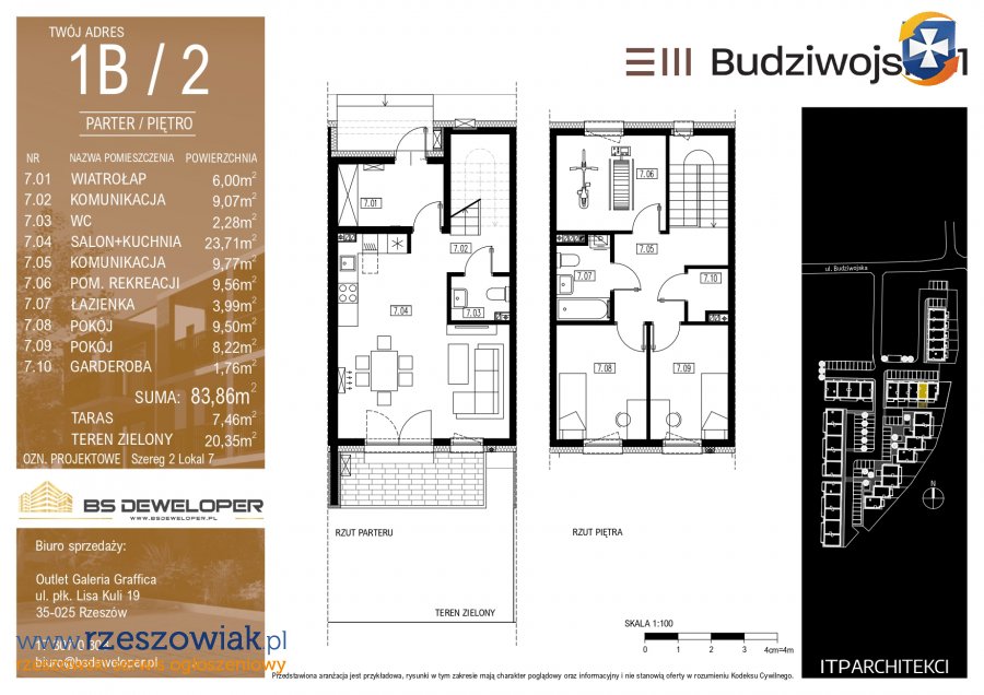 1B/2 szeregówka środkowa o powierzchni 83,86 m2 +taras/ teren zielony