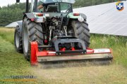 Szeroka kosiarka F2-225 w wersji z przesuwem bocznym 40 cm (-10 cm, +30 cm od osi kosiarki) posiada układ zawieszenia kompatybilny z ciągnikami wyposażonymi w zaczep II kat. Solidna obudowa gwarantuje wysoką stabilność i żywotność całego urządzenia. Kosiarki posiadają jednostronny układ napędowy przekładnia pasowa (na 5 pasków XPB) zabezpieczona osłonami. Przekładnia napędowa przenosi moc od 60 KM do 120 KM, zalecany obroty walka WOM (1-3/8â) to 540 obr/min co generuje prędkość obrotową wału tnącego 2380 obr/min. Urządzenie wyposażone jest w płozy/ślizgi prowadzące do regulowania wysokości koszenia oraz regulowaną pokrywę wyrzutową w 4 pozycjach. Prędkość jazdy należy dobrać do odpowiednich warunków terenu, jednakże powinna być nie wyższa niż 10 km/godz.