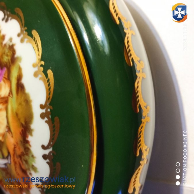 Szkatułka porcelana z motywem obrazu ,szkliwiona,sygnowana,stan bd. srednica 16 cm.