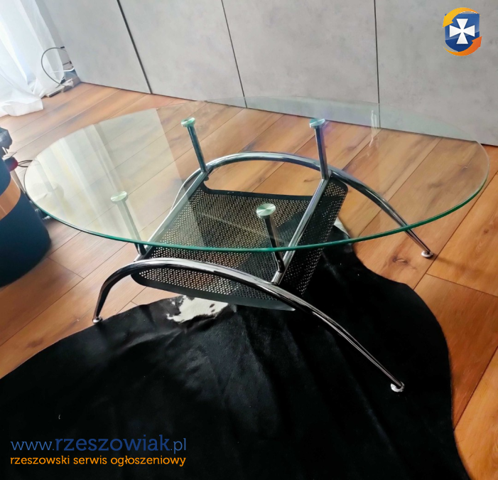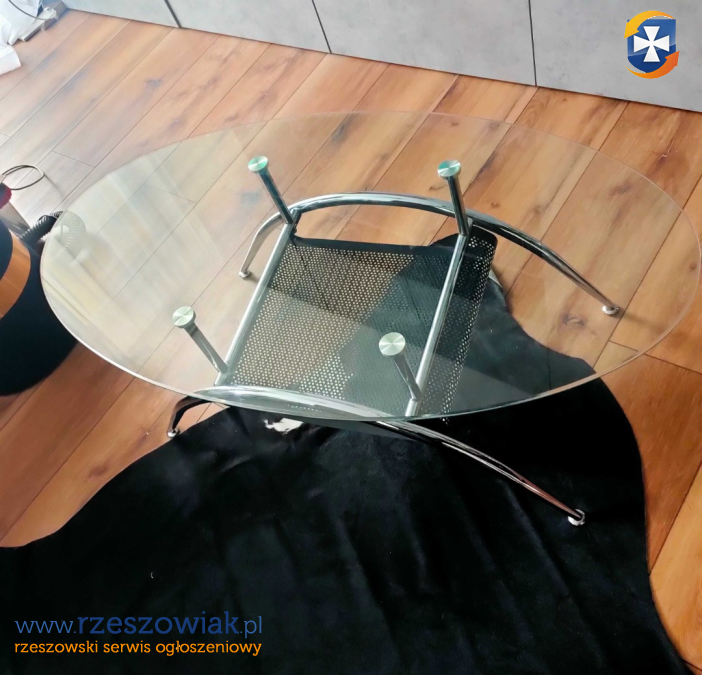 Szklana ława,stan bdb,półeczka z blachy, wymiary: szerokość 60 cm, długość 110 cm, wysokość 42 cm. Odbiór osobisty na Baranowce w Rzeszowie