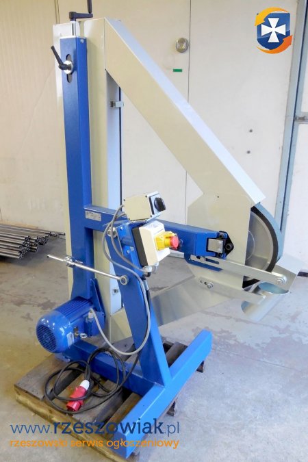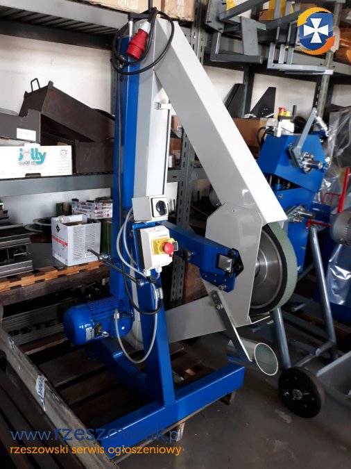 Szlifierka taśmowa do metalu Gekon Maxi to największa z oferowanych przez nas szlifierek taśmowych. Urządzenie posiada konstrukcję opartą na kształcie trójkąta z pochylaną częścią roboczą. Szlifierka przystosowana jest do pracy ciągłej w zastosowaniach przemysłowych. Silnik o mocy 3 kW umożliwia szlifowanie dużych elementów, pochylane ramie z kołem pasowym umożliwia dobranie optymalnej wysokości roboczej. Szlifierka pracuje z pasem ściernym o długości czterech metrów. Otwarta konstrukcja maszyny umożliwia bardzo dobre chłodzenie taśmy i jej wentylację. Urządzenie wyposażone jest w gniazdo do podłączenia odciągu. Gekon Maxi posiada solidną podstawę, a duża masa własna 150 kg zapewnia prawidłową stabilność podczas pracy.