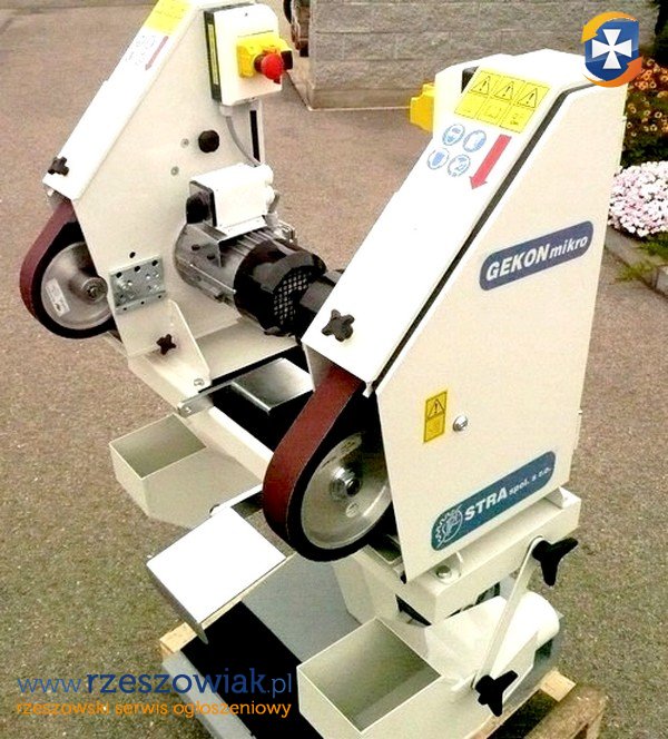 Szlifierka taśmowa stołowa Gekon Mikro to wydajna i kompaktowa maszyna zaprojektowana z myślą o precyzyjnym szlifowaniu metali. Wyposażona w silnik z dwiema prędkościami obrotowymi, umożliwia uzyskanie prędkości obwodowej pasa wynoszącej 15 m/s lub 30 m/s. Urządzenie wyróżnia się szybkim systemem wymiany pasa szlifierskiego oraz niezawodnym napędem, co gwarantuje ciągłość pracy w trudnych warunkach. Dodatkowo, system automatycznego napinacza pasa oraz płynne centrowanie pozwalają na łatwe i dokładne dostosowanie maszyny do różnych zadań.