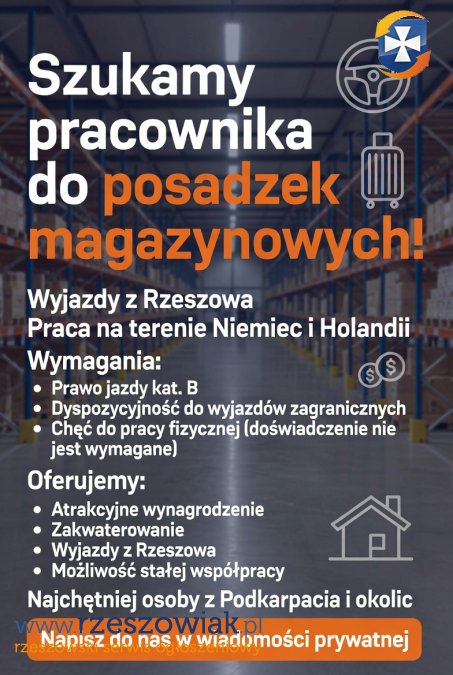 Najchętniej osoby z Podkarpacia lub okolic. Zainteresowanych zapraszamy do kontaktu w wiadomości prywatnej