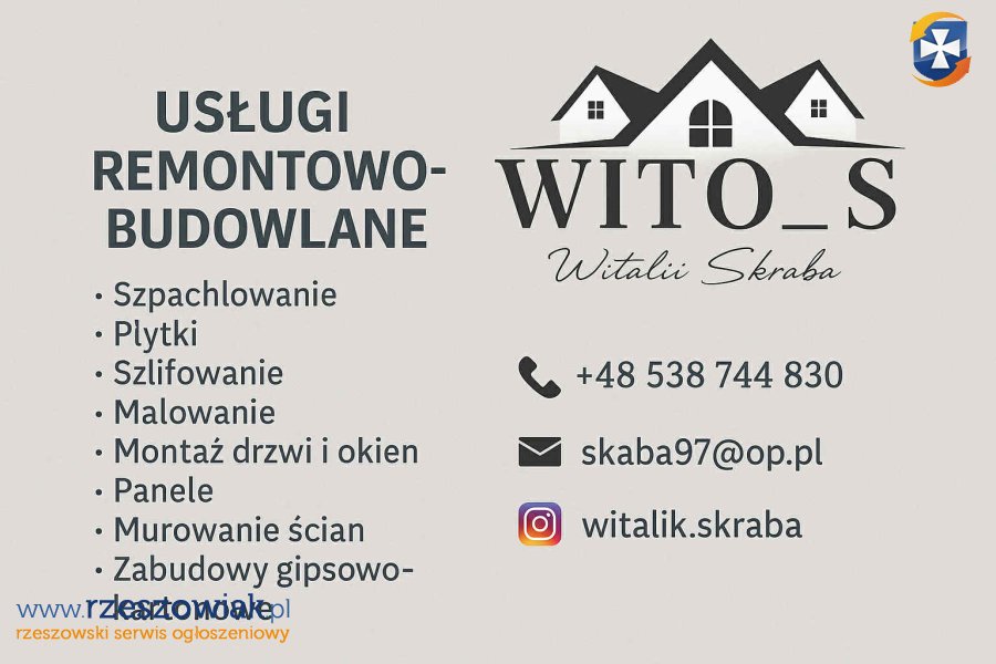 Wykonuję kompleksowe prace remontowo-budowlane â szpachlowanie, malowanie, układanie płytek,montaż drzwi i okien, zabudowy gipsowo-kartonowe