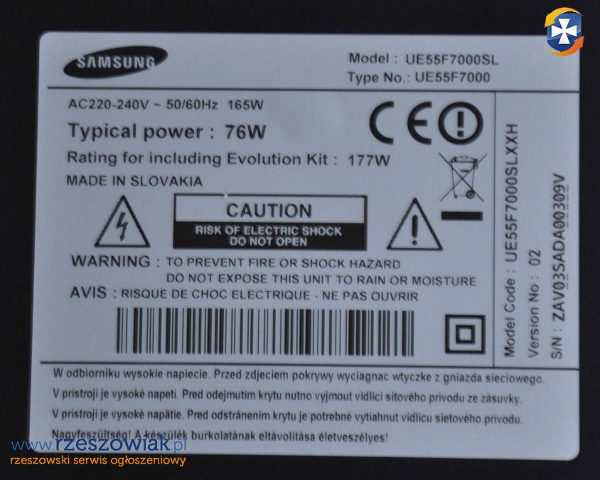 Telewizor Samsung UE55F7000SL Smart - uszkodzony po upadku