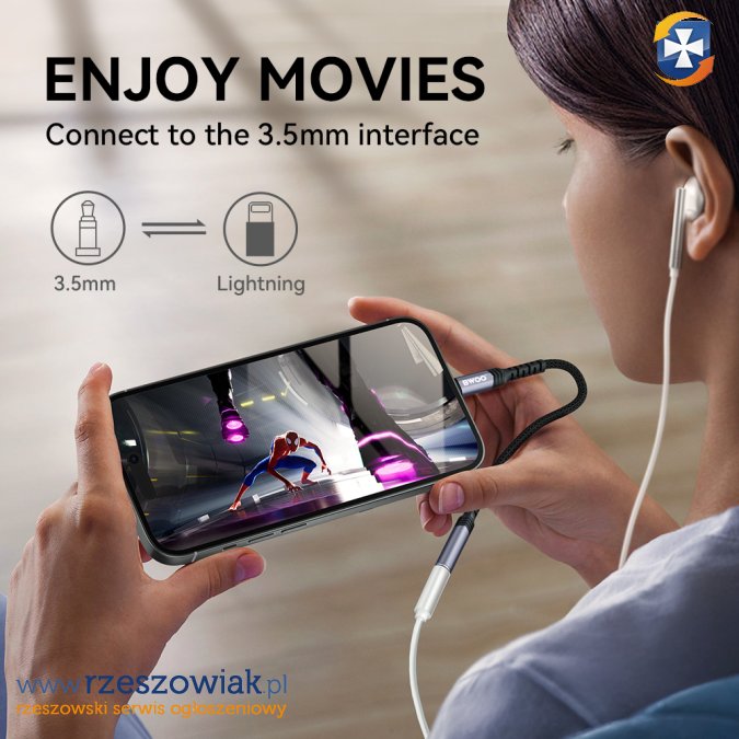 Ten adapter audio Lightning do 3,5 mm może być używany do podłączania urządzeń z portem Lightning, takich jak iPhone`y i iPady, do urządzeń pomocniczych, takich jak słuchawki 3,5 mm, radia samochodowe, głośniki oraz do odtwarzania muzyki i prowadzenia rozmów.