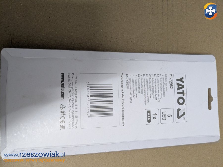 Tester płynu hamulcowego Yato YT-72982 z 5 diodami LED. Urządzenie umożliwia sprawdzenie stanu płynu hamulcowego w samochodzie. Zasilane jest baterią AAA. Solidna, wytrzymała konstrukcja.
