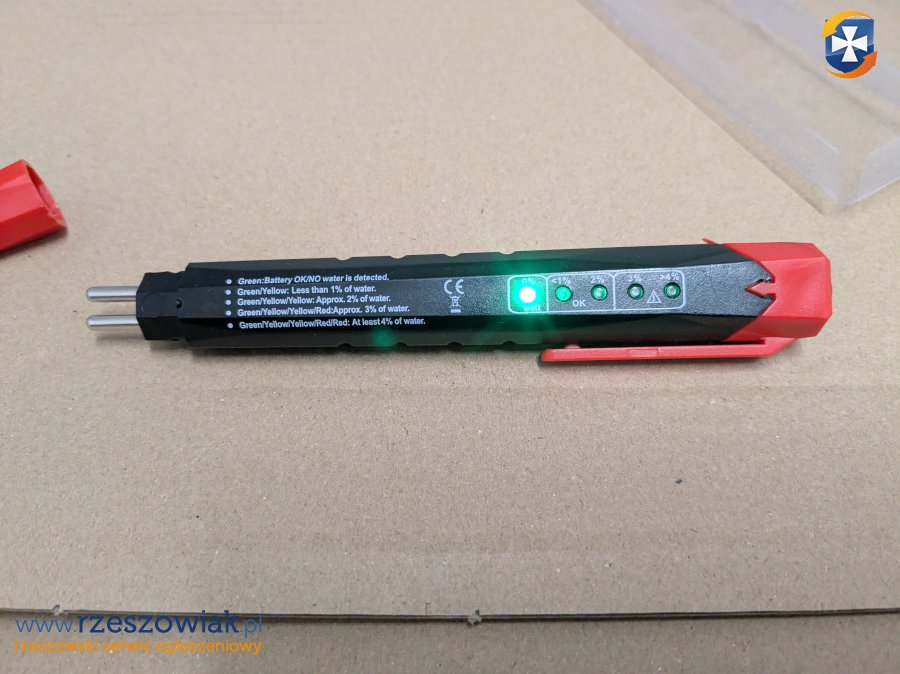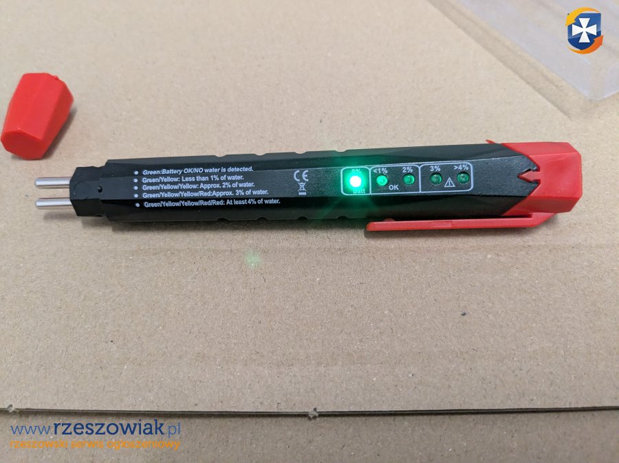 Tester płynu hamulcowego umożliwia sprawdzenie jakości płynu hamulcowego. Urządzenie mierzy zawartość wody w płynie hamulcowym i wyświetla wynik za pomocą diody LED. Tester jest wkładany do cieczy, a zawartość wody można odczytać bezpośrednio.