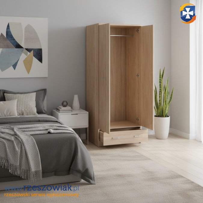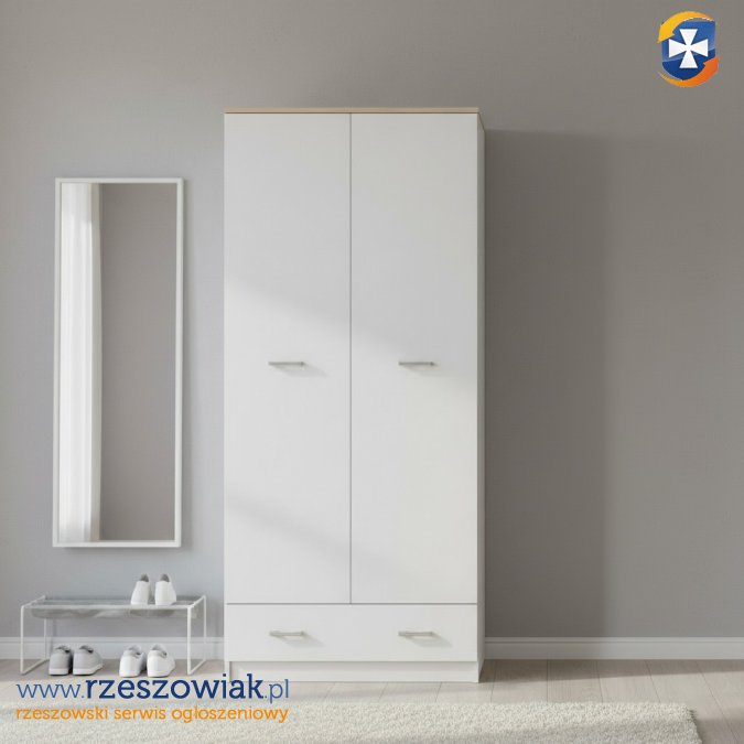 Zgrabna, tradycyjna szafa TOP MIX to idealne miejsce do przechowywania ubrań. Dodatkowo oprócz tradycyjnej strefy na ubrania wiszące posiada również wysuwaną szufladę, która podnosi funkcjonalność szafy. Dodając do tego prostą formę i minimalistyczny design otrzymujemy mebel, który może znaleźć się w wyposażeniu każdej sypialni, pokoju młodzieżowego lub garderoby.