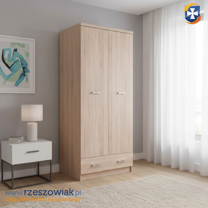 Zgrabna, tradycyjna szafa TOP MIX to idealne miejsce do przechowywania ubrań. Dodatkowo oprócz tradycyjnej strefy na ubrania wiszące posiada również wysuwaną szufladę, która podnosi funkcjonalność szafy. Dodając do tego prostą formę i minimalistyczny design otrzymujemy mebel, który może znaleźć się w wyposażeniu każdej sypialni, pokoju młodzieżowego lub garderoby.