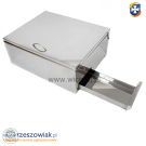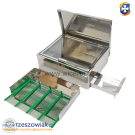 Posiadam w sprzedaży nową topiarkę słoneczną do wosku ze stali nierdzewnej kwasoodpornej AISI 304. W korpusie topiarki na tacy umieszcza się uprzednio wycięte plastry lub w całości z ramką. Pod wpływem działania promieni słonecznych wsad nagrzewa się do temperatury około 120°C co powoduje topienie się woszczyzny. Wosk z tacy, spływa do specjalnej rynienki, a zanieczyszczenia pozostają na podstawie. Dzięki temu uzyskuje się czysty, żółty wosk.