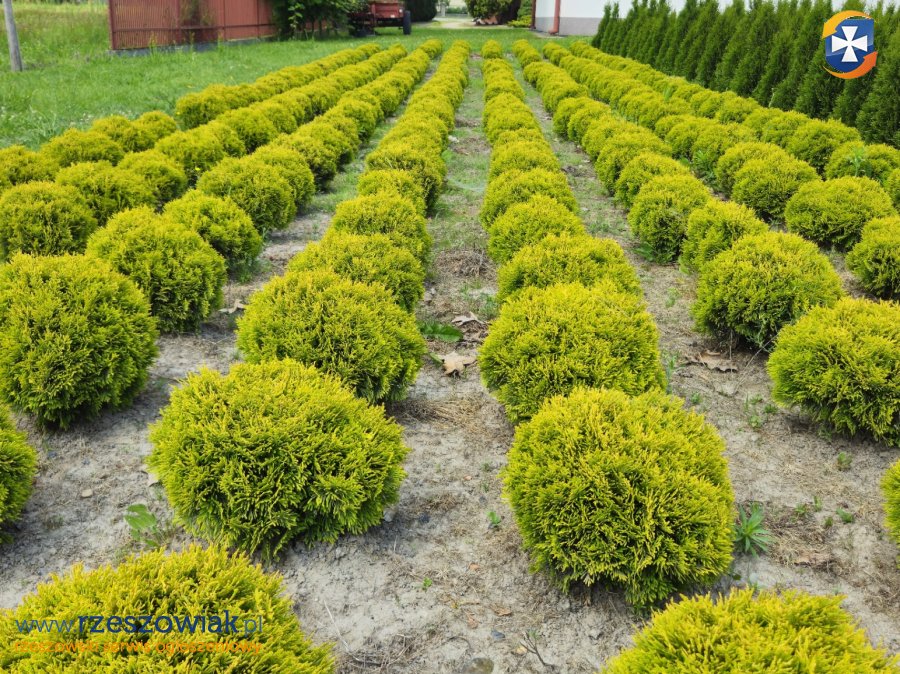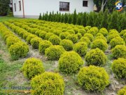 Tuja Mirjam (Złota Kula) to kompaktowa, kulista odmiana o wyjątkowo gęstym ulistnieniu i intensywnej złocistej barwie, która pozostaje atrakcyjna przez cały rok. Dzięki powolnemu wzrostowi nie wymaga przycinania, a jej naturalna forma wprowadza porządek i harmonię do każdej przestrzeni ogrodowej.