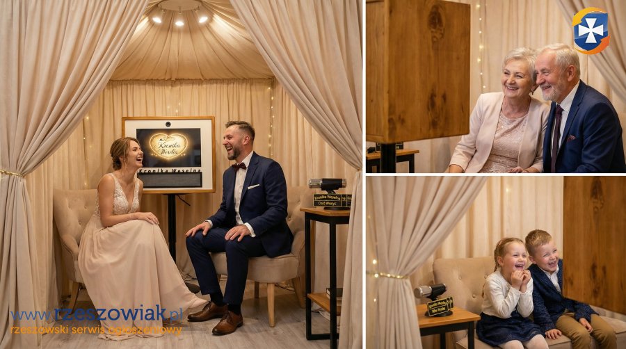 To profesjonalna strefa nagrań wideo, w której Wasi goście odpowiadają przed kamerą na przygotowane pytania. Tworzymy elegancką, klimatyczną przestrzeń z odpowiednim oświetleniem i wysokiej jakości sprzętem.