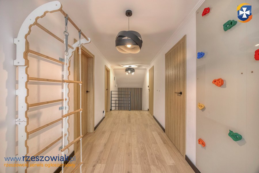 Przestronny hall - 11,25 m2 ze ścianą wspinaczkową dla dzieci oraz z wyjściem na balkon (2,5 m2)