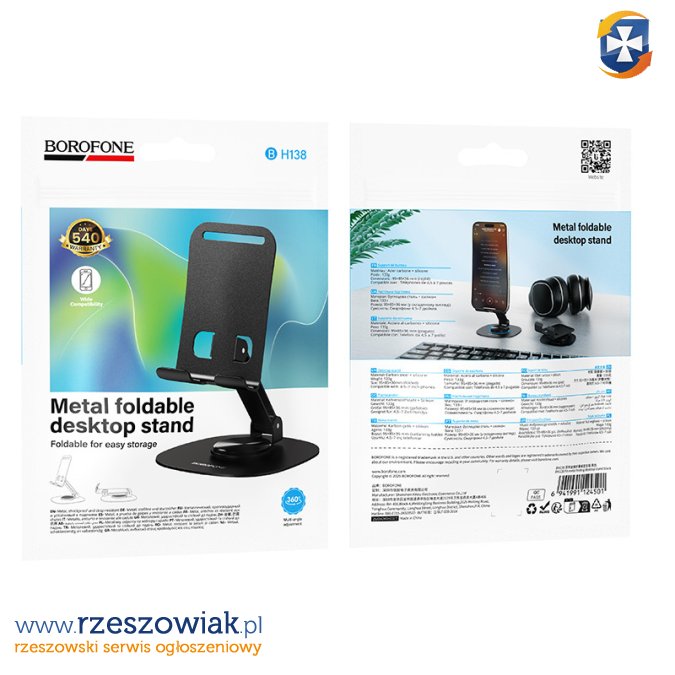 Wykonany z wytrzymałej stali węglowej i pokryty silikonem, zapewnia stabilność i ochronę urządzenia przed zarysowaniami. Kompaktowa konstrukcja z możliwością złożenia sprawia, że uchwyt jest łatwy w przenoszeniu i wygodny w codziennym użytkowaniu.