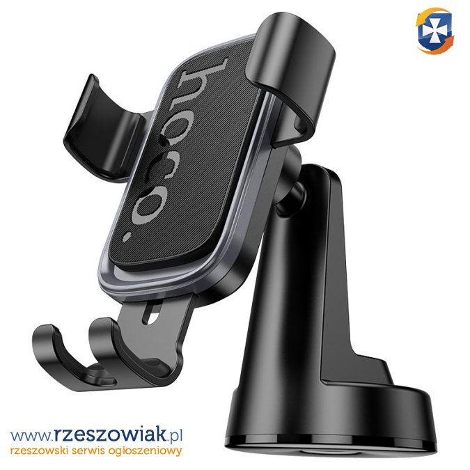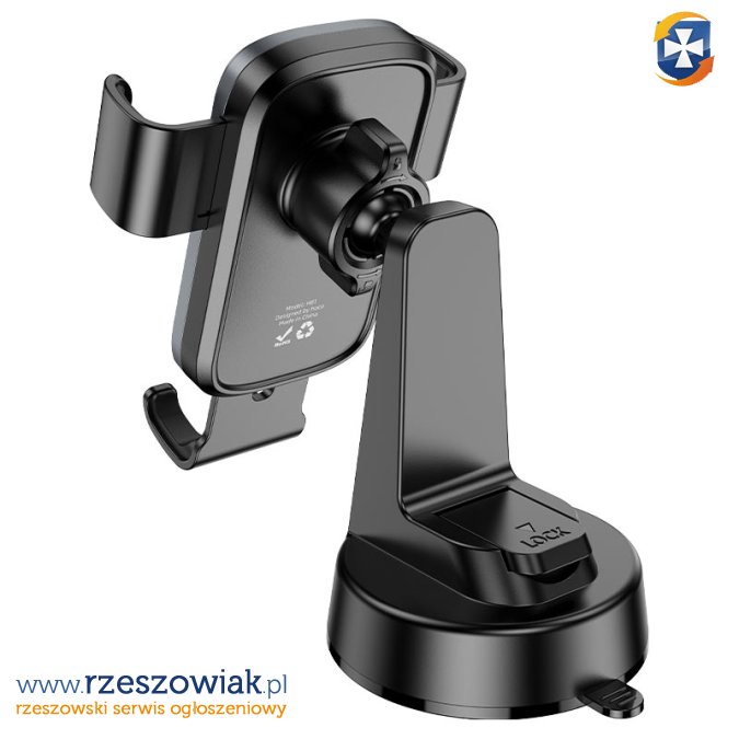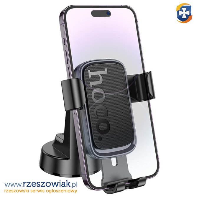 Uchwyt samochodowy Hoco z przyssawką do deski rozdzielczej. Wbudowany system regulacji umożliwia dopasowanie uchwytu do preferencji użytkownika.