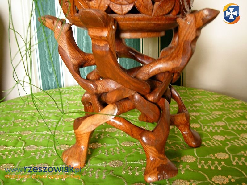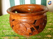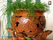 Unikatowa drewniana rzeżbiona osłonka,donica z jednego kawałka drewna.Całkowita wysokość -31 cm.szerokosć -19,5 cm.Fotki mówią same za siebie.Drewno egzotyczne twarde,ręczna praza rzeżbiarza.