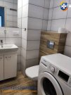 W łazience znajduje się kabina prysznicowa, umywalka wraz z szafką, WC podwieszane, pralka.