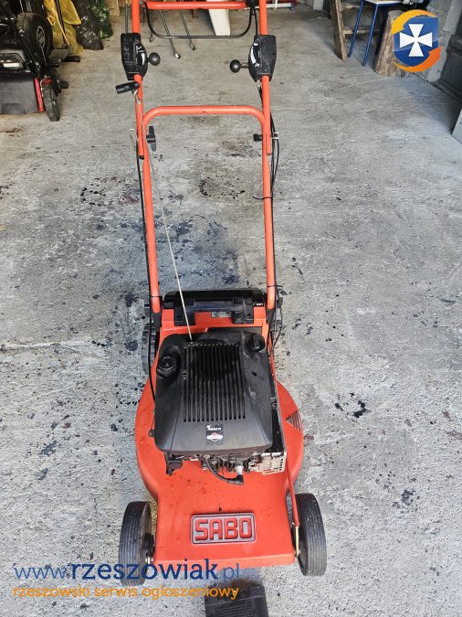 Używana spalinowa kosiarka Sabo w dobrym stanie technicznym. Kosiarka Spalinowa renomowanej marki SABO z napędem Szerokość koszenia 46cm