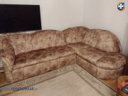 Używana, wygodna narożna sofa w stylu retro. Posiada funkcję spania. Sofa jest w dobrym stanie technicznym, ale nosi ślady użytkowania. Idealna do salonu lub pokoju gościnnego. Dodatkowo fotel do zestawu