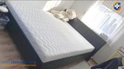 Używane łóżko tapicerowane, materiał skóropodobny firmy MK Foam. Model 80263.