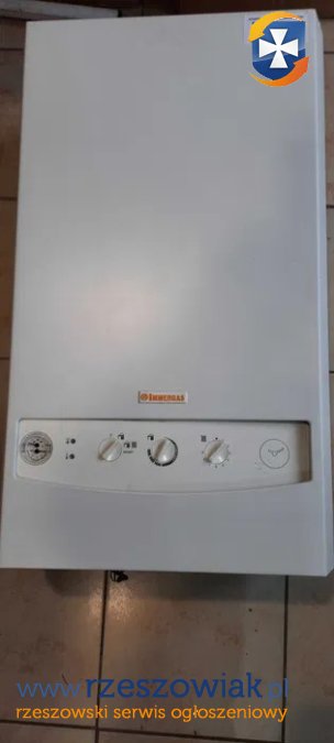 Używany kocioł gazowy Immergas Eolo Star z 2004 roku. Posiada moc cieplną od 9,3 do 23,3 kW. Urządzenie jest przystosowane do pracy z gazem ziemnym i ma klasę NOx: 3. Więcej informacji na temat parametrów technicznych można znaleźć na tabliczce znamionowej.