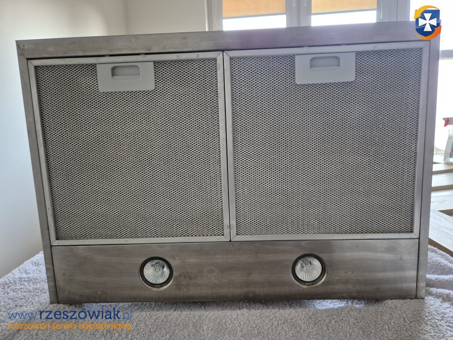 Używany okap koloru srebrnego marki MAAN, okap wolnowiszący. Wymiary 60x41x 45 wys. Odbiór własny Rzeszów.