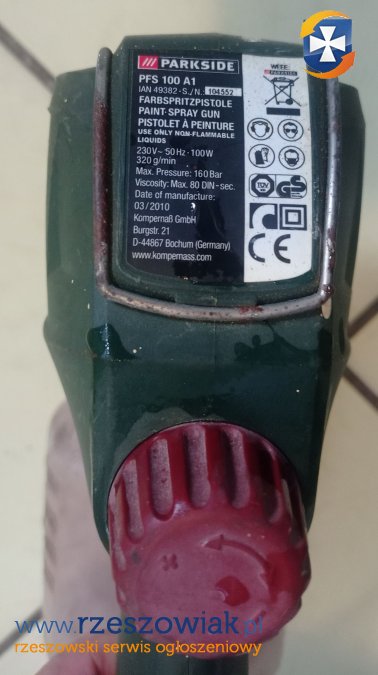 Używany pistolet do malowania Parkside PFS 100 A1. Urządzenie jest w dobrym stanie technicznym i gotowe do użytku. Posiada wygodny uchwyt i regulację strumienia farby. Nadaje się do malowania mebli, ścian i innych powierzchni.