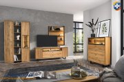 Mebel z frontami z naturalnego drewna i korpusie fornirowanym. Vigo jest wyjątkowym połączeniem elegancji i nowoczesnego designu, podkreślonych w każdym detalu. Masywne komody, witryny, szafki wiszące i stojące zwracają uwagę swym wyjątkowym rysunkiem naturalnego, olejowanego drewna dębowego. Kolor korpusów, a także frontów, złamany delikatnymi wstawkami ze stali, nadaje meblom elegancji i wyjątkowości. Cechą wyróżniającą kolekcję są nóżki metalowe.. Dyskretnie wkomponowane elementy oświetlenia przestrzeni oszklonych oraz krawędzi półek szklanych, nadają meblom unikatowy wygląd, a tym samym wprowadzają do wnętrza wyjątkowy nastrój.